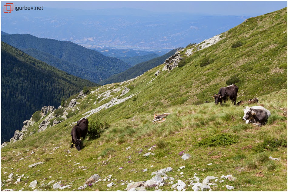 За наша изненада, пръснато стадо крави си пасеше нехайно по стръмните скатове.