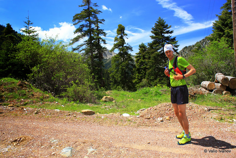 И най-после на върха. Вдясно долу се забелязва пътят, по който тичах нагоре - на около 600-700 метра под мен.