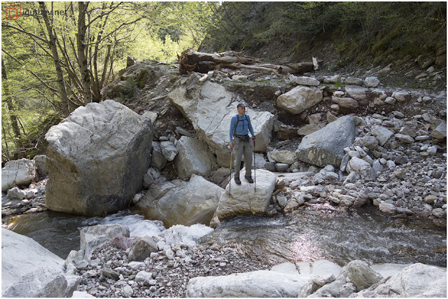 Не много след преградата се спуснахме долу в коритото на реката. Пътят беше безмилостно отнесен. Нямахме много варианти освен лъвски скок за преминаване.